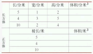 长/厘米 宽/厘米 高/厘米 体积/立方厘米